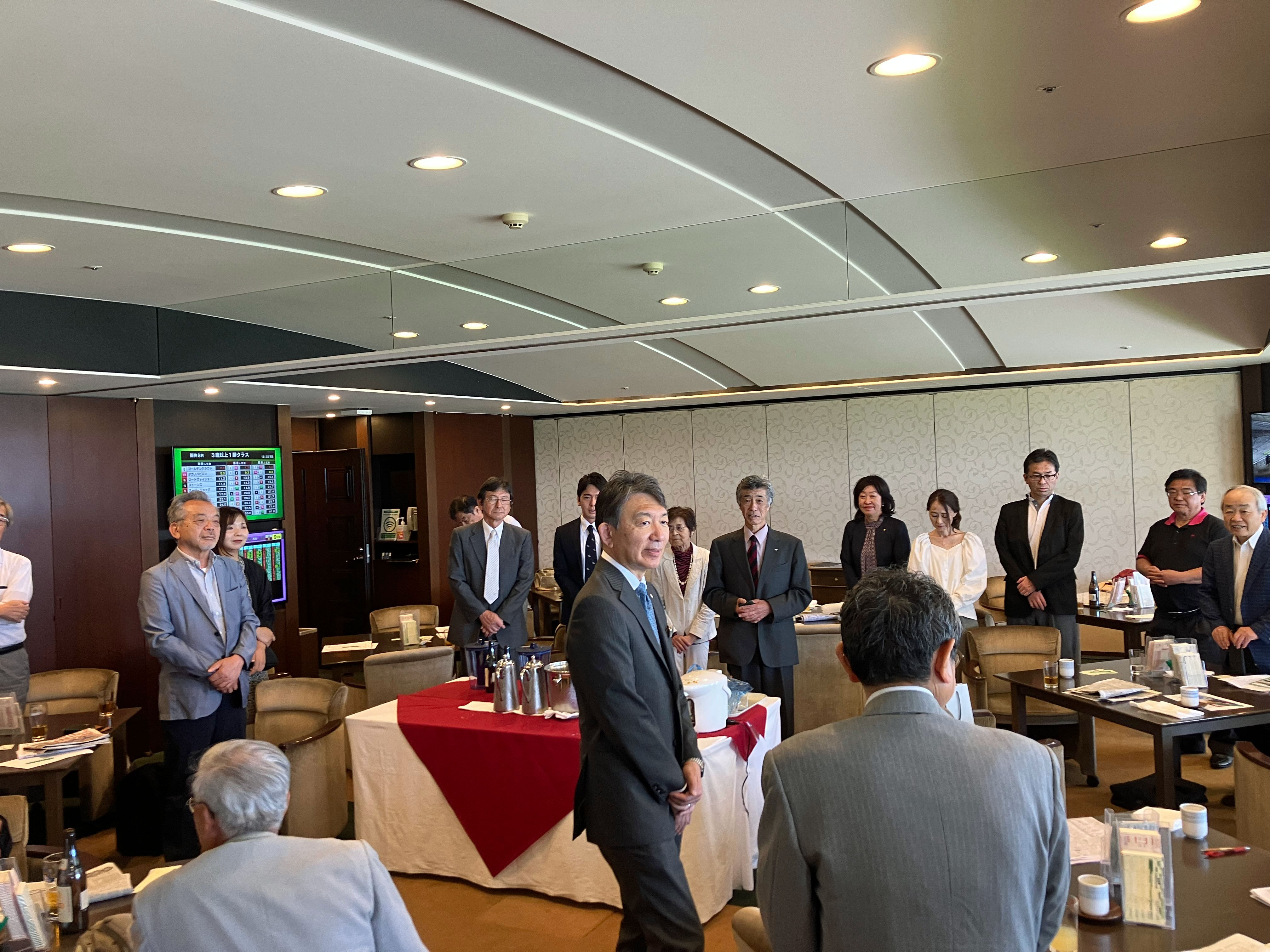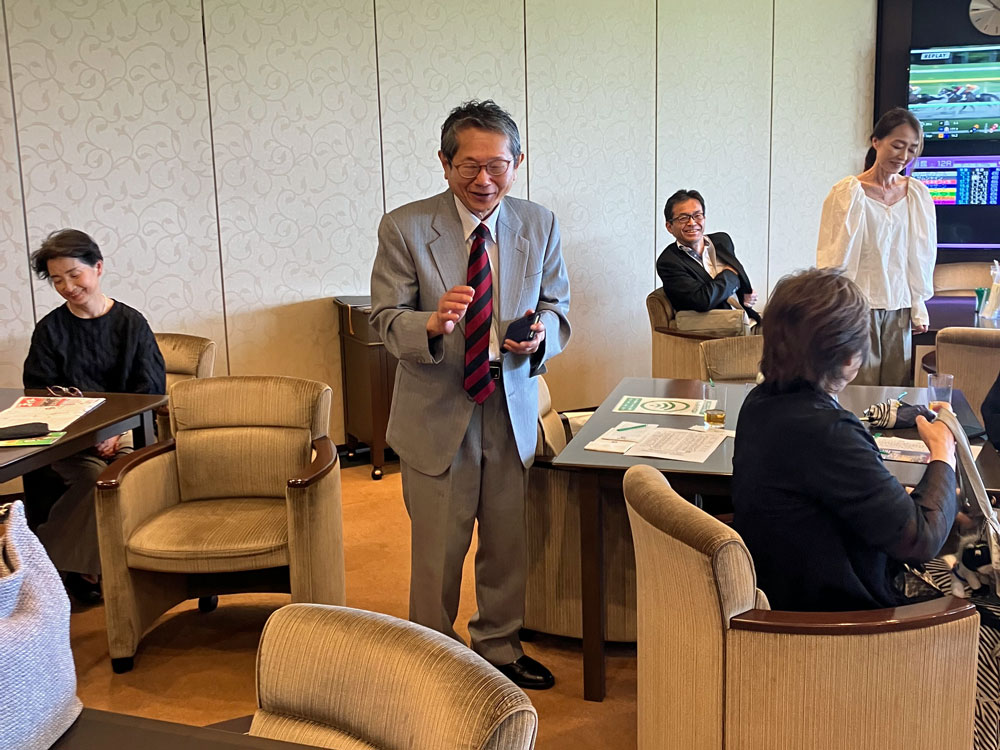 昼食時、東京競馬場場長の髙城秀憲様(校友)が来室され、ご挨拶を頂きました。15時45分、メインレース後、橋本美紀副会長の閉会挨拶で観戦会を閉じました。
