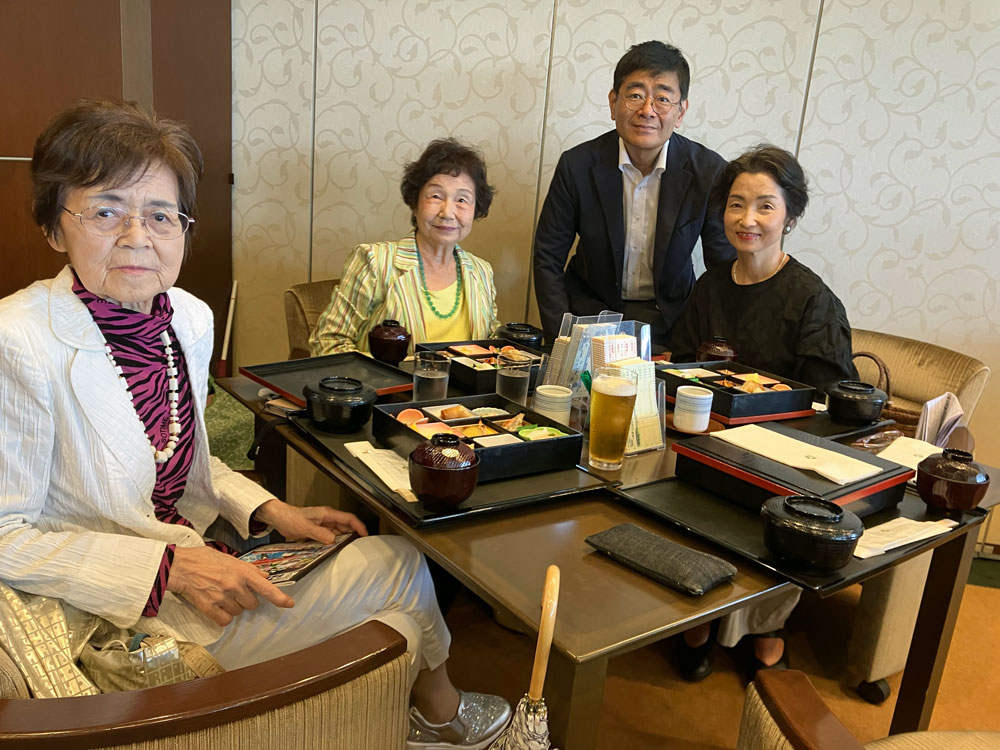 平野 祝夫(1968商)、平野 泰江(平野祝夫氏家族)、南 三千代(1969理工)、
