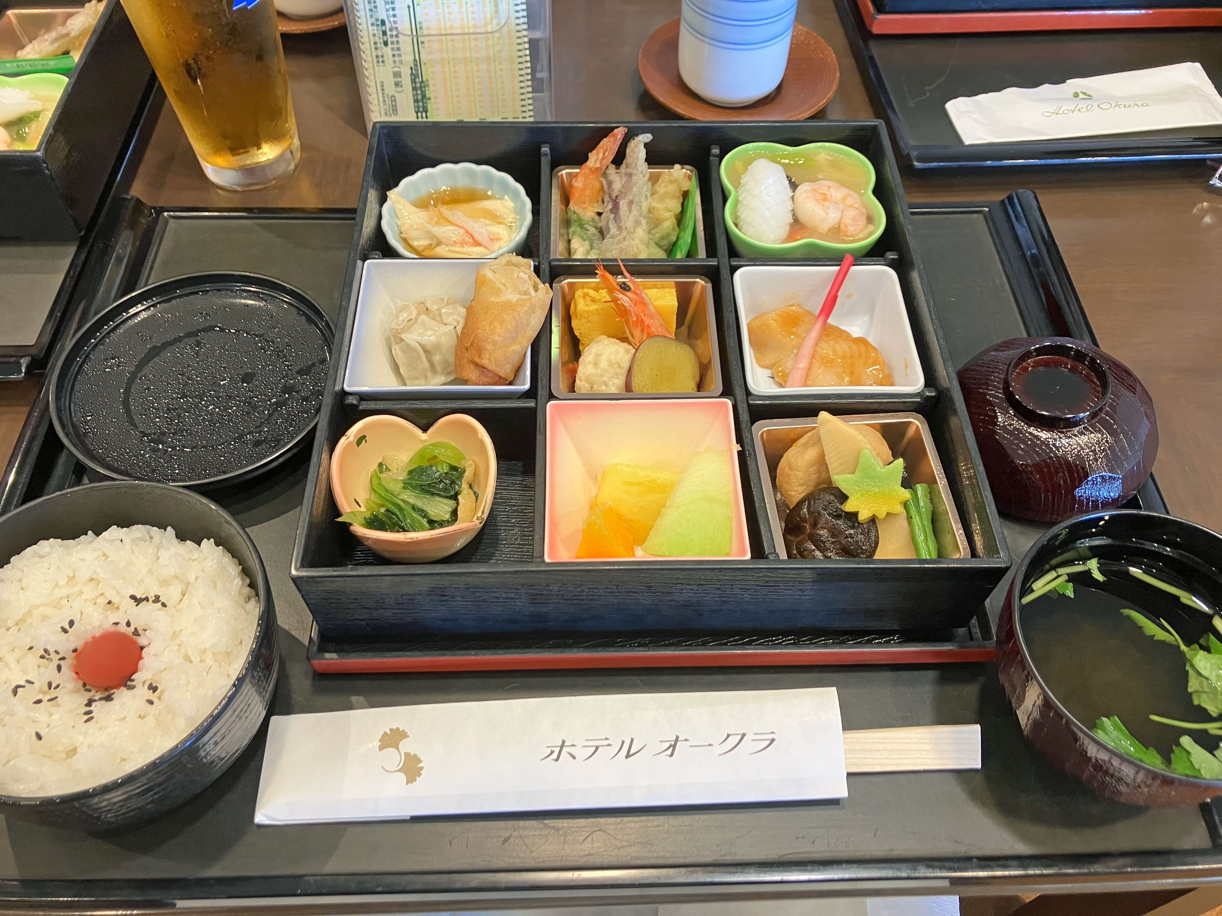 お昼は、ホテルオークラの美味しい九つ切弁当を堪能しました。