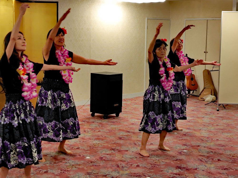 小松さんのオリジナルの詩の朗読、府中トーモンレフア(大野さん、西村さん、橋本さん、南さん)によるフラ2曲。