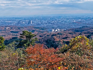 今回は筆者の忘年会疲れ(?)といった事情からリフトを利用し、薬王院経由で山頂を目指すこととしました。リフトの所要時間は約5分。リフトを降りたところにビュースポットあり。この日はここから新宿高層ビル群から遥か東京スカイツリー、横浜ランドマークさらには房総半島まで望むことができました。幸先良いスタート。
