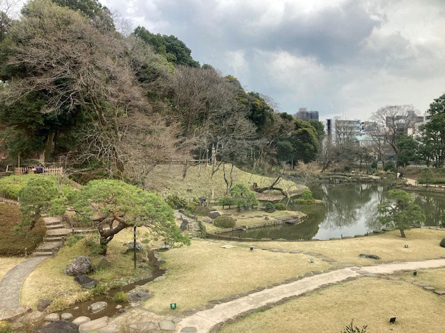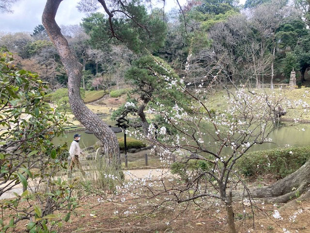 その後は肥後細川庭園(新江戸川公園)へ。この地は幕末期、肥後熊本54万石の藩主細川越中守の下屋敷、抱屋敷だったとのこと。池泉回遊式の庭園は紅白の梅が見頃でした。
