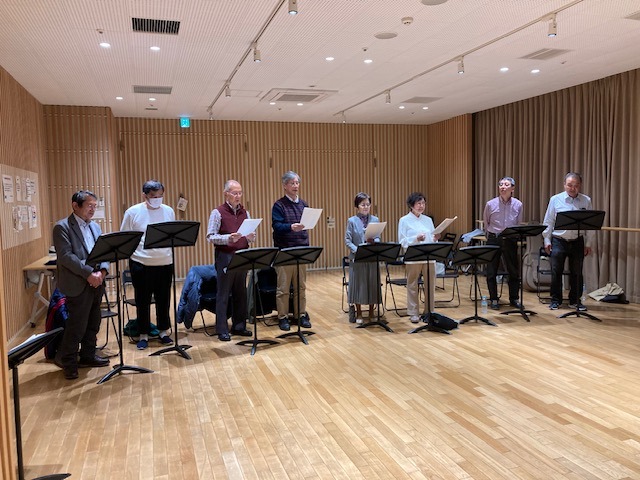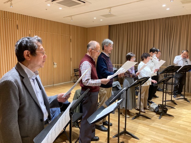最初は発声練習を兼ねて「早春賦」、次は元気よく声が出せる「おおブレネリ」、そして叙情的な「ローレライ」を歌いました。ドイツのライン川にまつわる伝説の話を古曳さんから聞き、実際にライン川で聴いたことのある人もいて話が盛り上がりました。