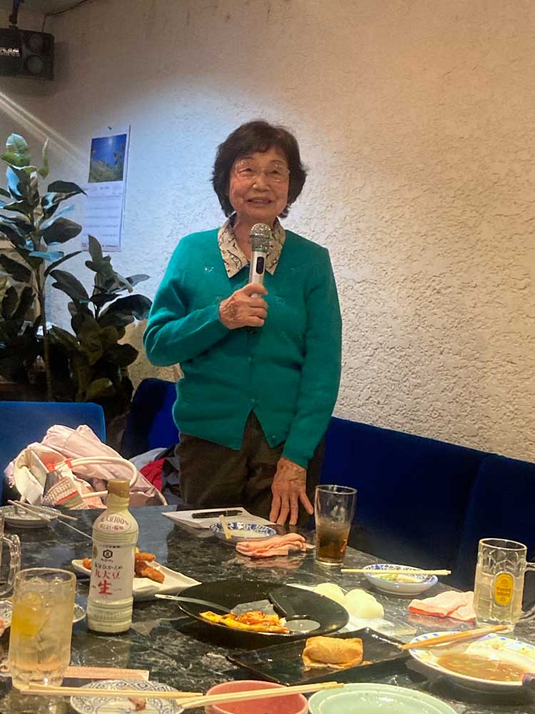続いて平野さんと塙(敏比古)の2人でギターと歌「22才の別れ」、そして塙(宏美)の鍵盤ハーモニカが加わり、かぐや姫の「黄色い船」をコーラス付き歌と演奏のパフォーマンスで盛り上がりました。