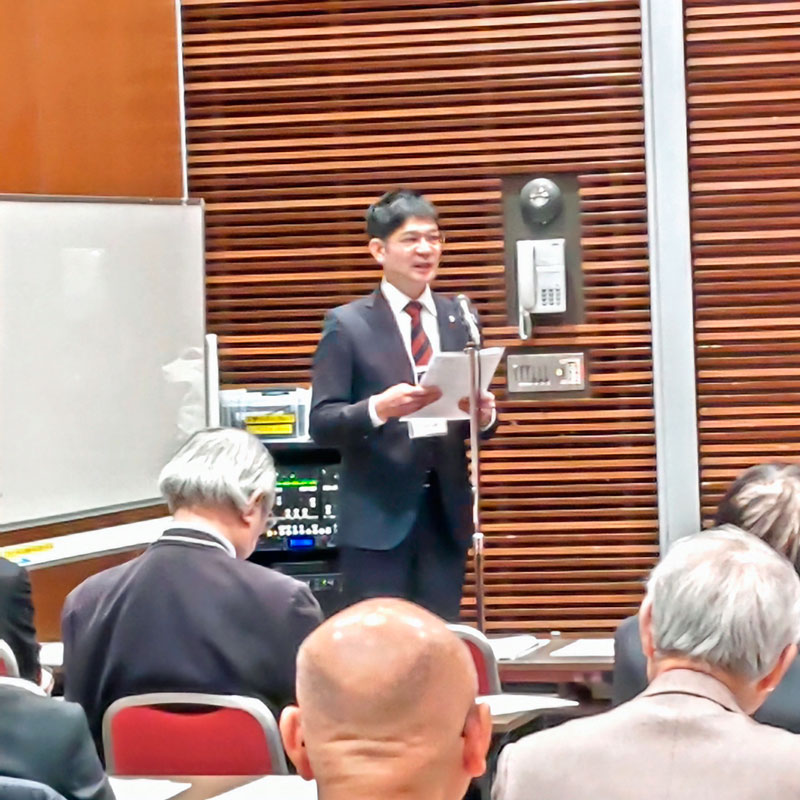第1部総会は日比野悦久常任幹事の司会により進行。当日は大野正道会長がご欠席だったことから、鈴木正明副会長から冒頭挨拶があり、参会への謝辞が述べられた後、楽しい一時を過ごしてほしいと述べられました。