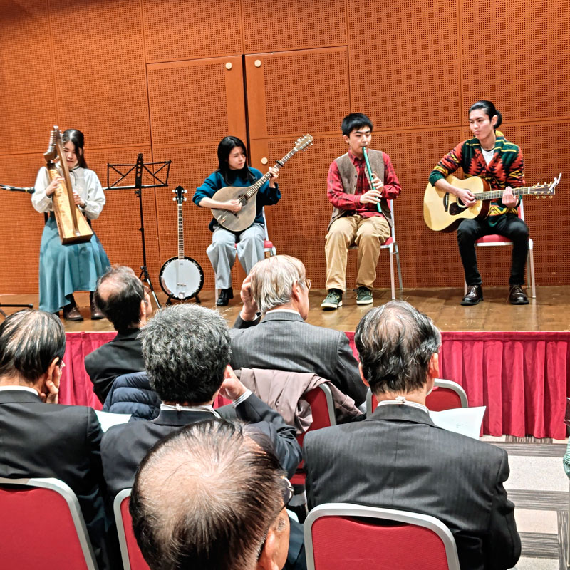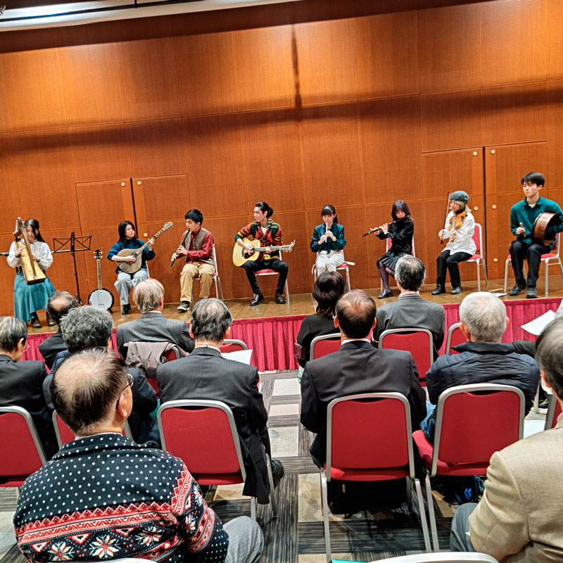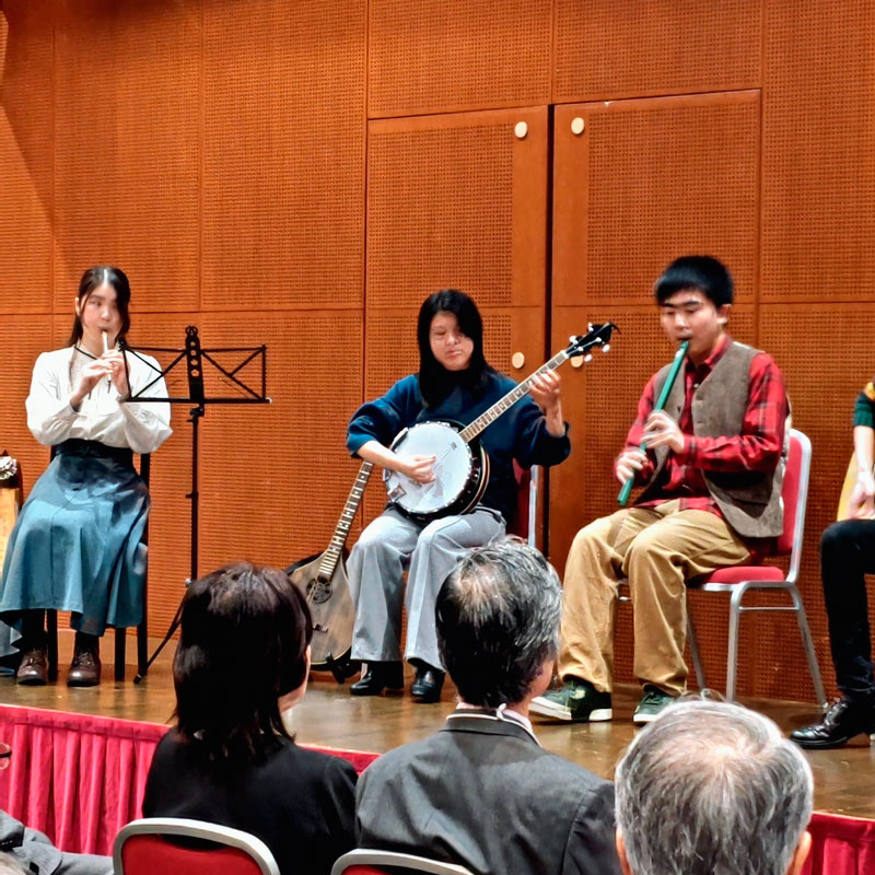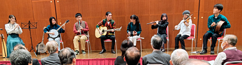 第2部演奏会は15時30分から塙宏美常任幹事の司会により進行。早稲田田大学ケルト音楽同好会(通称:わせける)の演奏を楽しむこととしました。この会は早稲田大学唯一の公認アイルランド音楽演奏サークル。 |