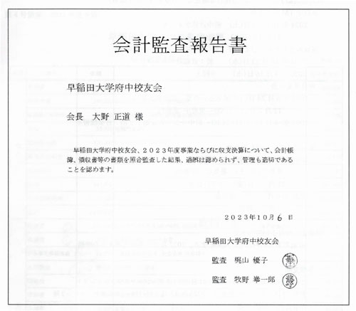 府中校友会 2023年度会計監査報告