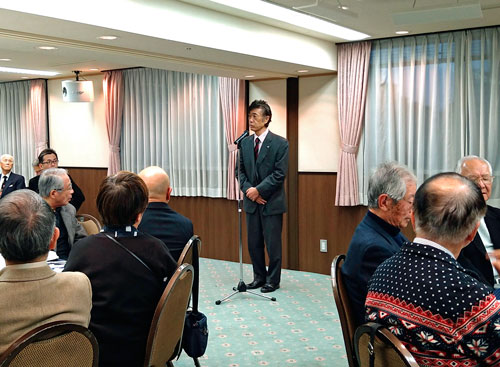 大野前会長に黙禱を捧げた後、新会長のこれからの抱負並びに新会長の挨拶、その後皆様と懇親を深め和やかな雰囲気で暫し歓談いたしました。 |