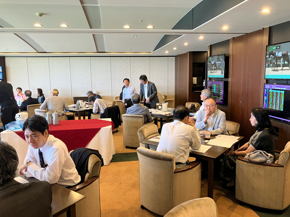 昼食時、東京競馬場場長の髙城秀憲様(校友)が来室され、ご挨拶を頂きました。15時45分、メインレース後、橋本美紀副会長の閉会挨拶で観戦会を閉じました。