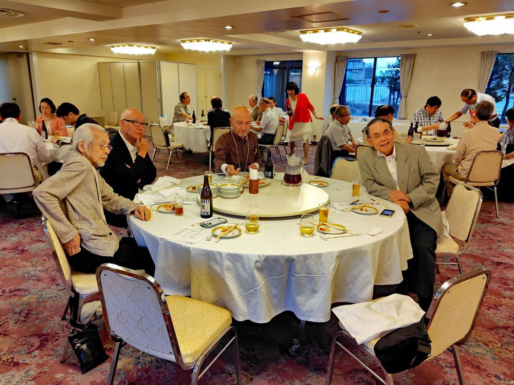 小村さんの司会により、担当幹事の開会挨拶、鈴木会長の挨拶、そして乾杯の音頭は今年91歳の大先輩柴田さん、とてもお元気な姿と力強い挨拶に感激しました。
