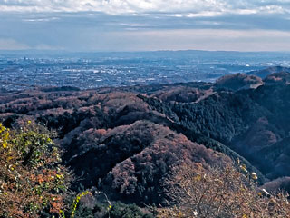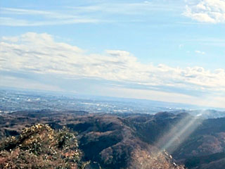 今回は筆者の忘年会疲れ(?)といった事情からリフトを利用し、薬王院経由で山頂を目指すこととしました。リフトの所要時間は約5分。リフトを降りたところにビュースポットあり。この日はここから新宿高層ビル群から遥か東京スカイツリー、横浜ランドマークさらには房総半島まで望むことができました。幸先良いスタート。