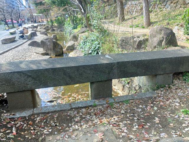 歩き始めて最初に石組みの池を見ることができます。かつてこの地には神田上水の堰が設けられていたこと。この石組みには大洗堰の石柱が使用されているとのことでした。日本最古とされる神田上水(神田川)は、徳川家康の命により開かれたもので、井之頭池を水源とし、下流の大滝橋辺りに大洗堰を築き、水位を上げて上水を江戸屋敷に入れ、樋で地下を神田や日本橋方面に流したとのことです(園内掲示板より)。