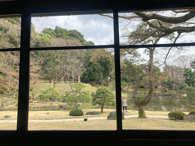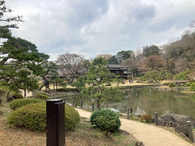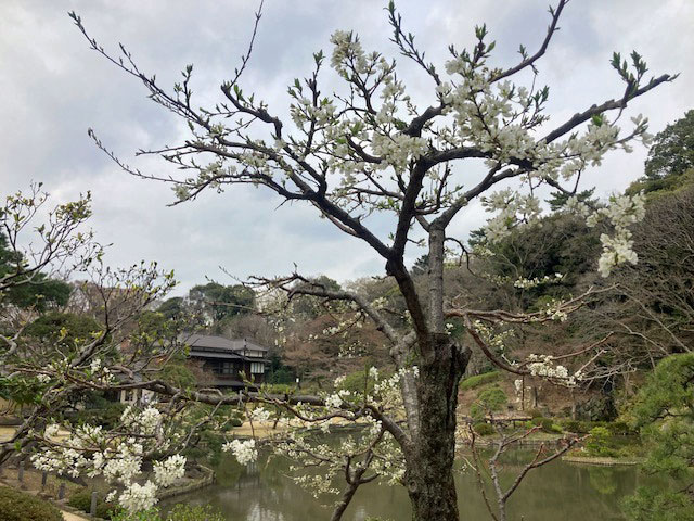 その後は肥後細川庭園(新江戸川公園)へ。この地は幕末期、肥後熊本54万石の藩主細川越中守の下屋敷、抱屋敷だったとのこと。池泉回遊式の庭園は紅白の梅が見頃でした。