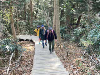 2025年も12月9日(木)am10:30に京王線高尾山口駅前にハイキング組4名(鈴木正明、小村裕ご夫妻、筆者(古曵))が集合。この日は雨の心配もなく、風もない絶好のハイキング日和でした。