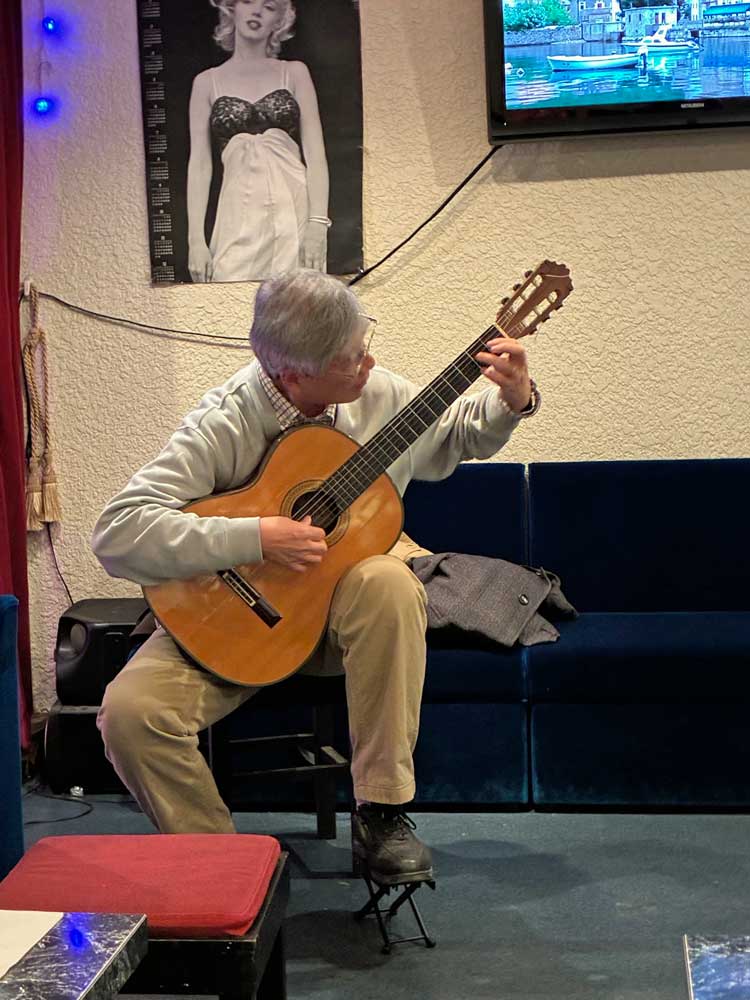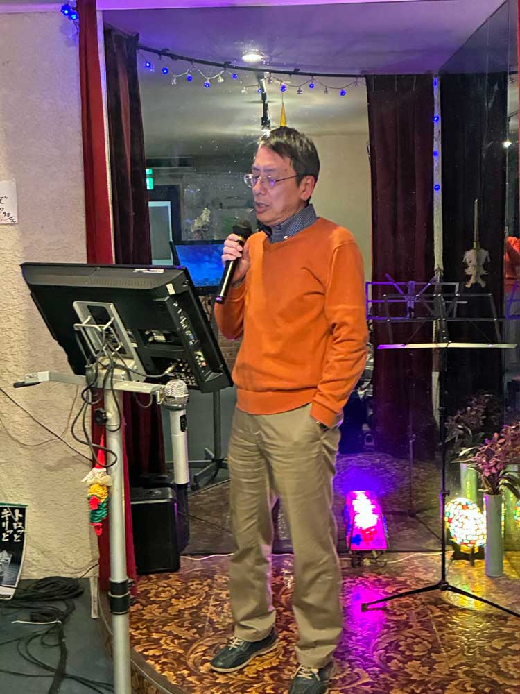 今年最後の音楽愛好会の集まりは、忘年会も兼ねて飲食付きで3時間行いました。「音楽を楽しむ」コンセプトは変わらず、乾杯からスタートです。