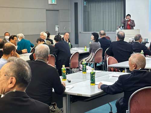 2023年度総会を、11月11日(土)14時から、府中の森芸術劇場 平成の間で開催しました。総会、講演会、懇親会をあわせて開催したのは、2018年から4年ぶりでした。総会には、府中校友会会員38名が出席。また、三多摩支部各稲門会から22名の方が来賓として出席されました。