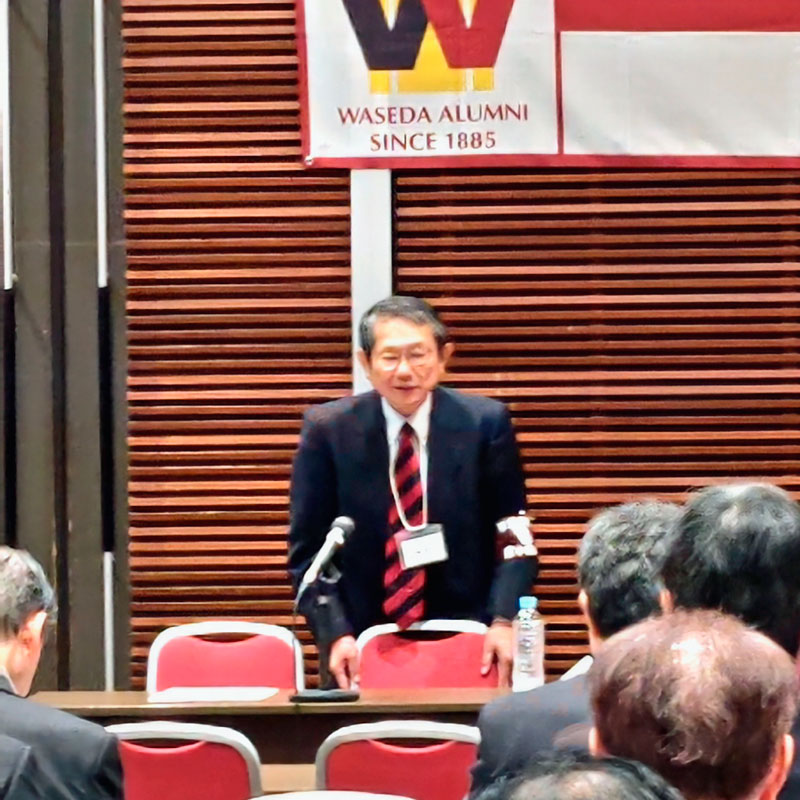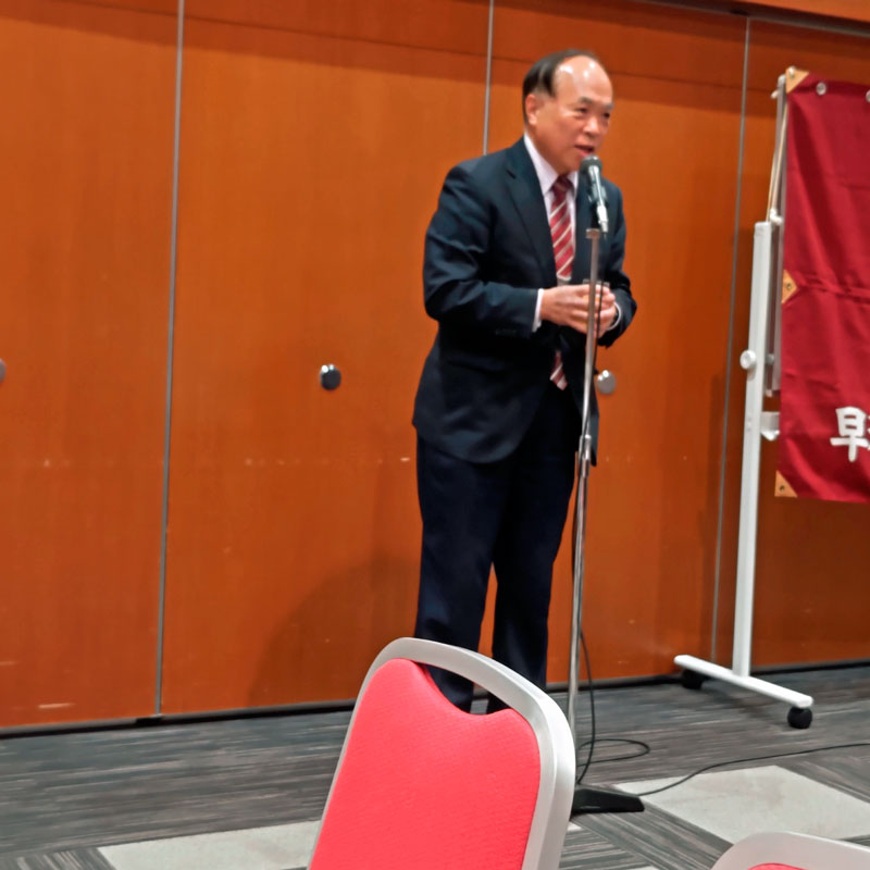 議事終了後は、ご来賓を代表して早稲田大学東京三多摩地区担当の宇佐美雄蔵課長から総会開会への祝辞、大学の現状、全国校友会の活動状況などの説明頂の後、今後とも連携を密にして母校への支援を頂きたいとのご挨拶がありました。 |