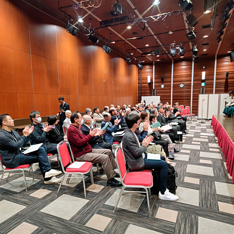 2024年度総会は11月30日(土)14時30分からルミエール府中コンベンションホール飛鳥で開催されました。総会には府中校友会会員40名が出席。また大学本部及び三多摩支部各稲門会から計18名の方に来賓として臨席頂きました。