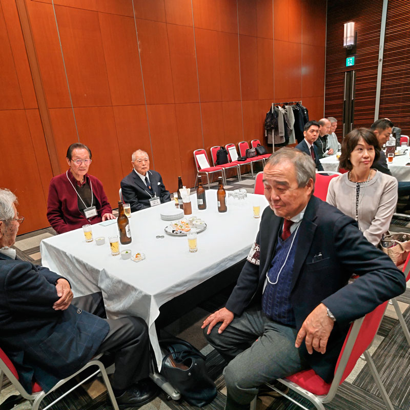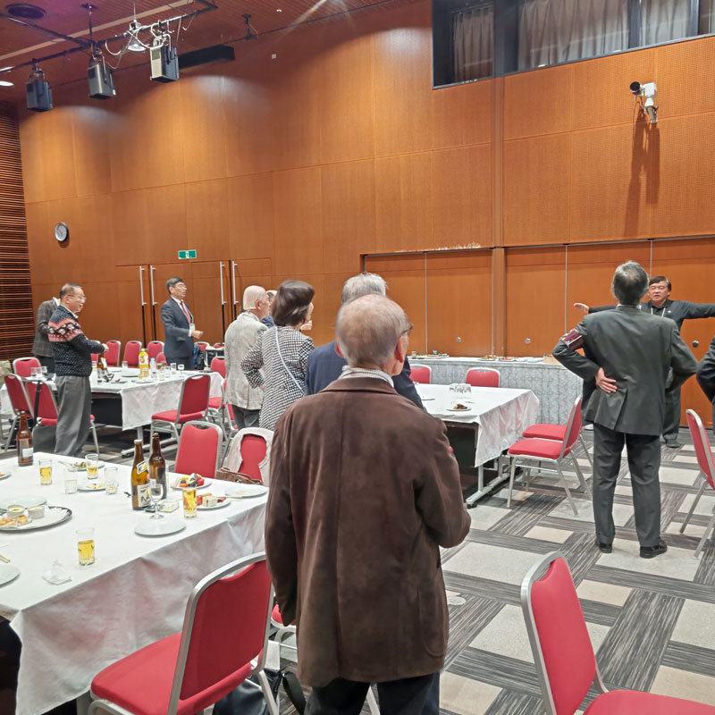 冒頭は第1部総会で選任された鈴木正明新会長からご挨拶。次いで手塚としひさ副会長(現府中市議会議長)から乾杯のご発声。その後は暫しグラス片手に美味しいお料理を楽しみながら和気あいあいの懇談に次ぐ懇談。久しぶりに再会できた喜びや、他の稲門会との新たな出会いなど各自様々に会話を愉しまれたようです。